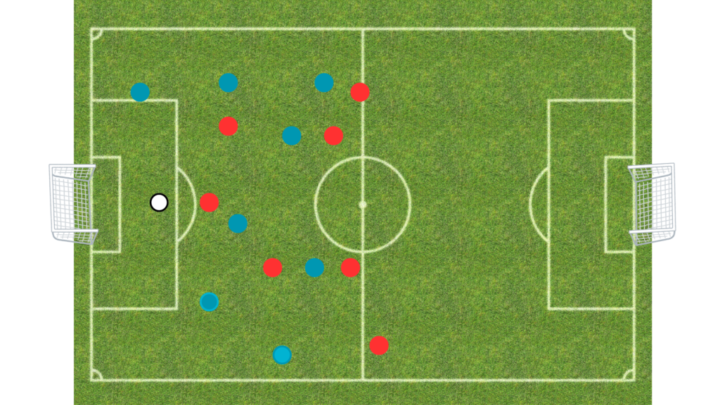 En situaciones como esta, muchos jugadores podrían optar por lo seguro: controlar el balón y buscar un pase sencillo (el central derecho). Sin embargo, Sommer demuestra una comprensión más profunda del juego. Al dar un pase largo y raso y permitir un cambio rápido hacia el otro lado del campo, abre una opción mucho más peligrosa para su equipo.